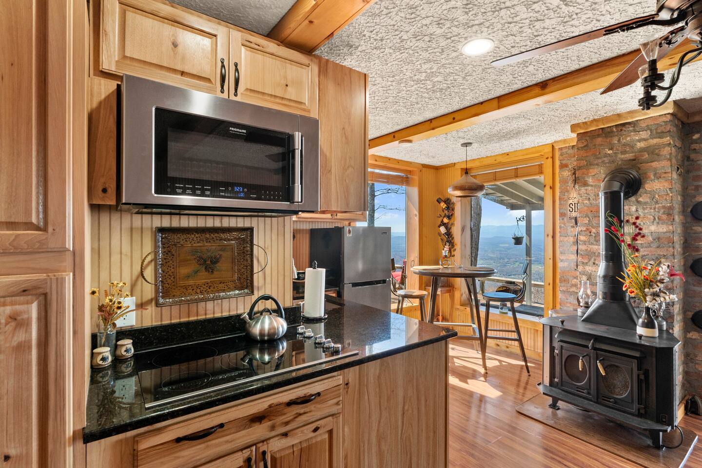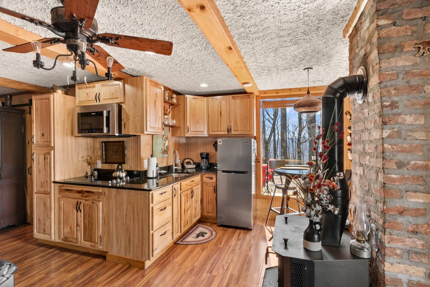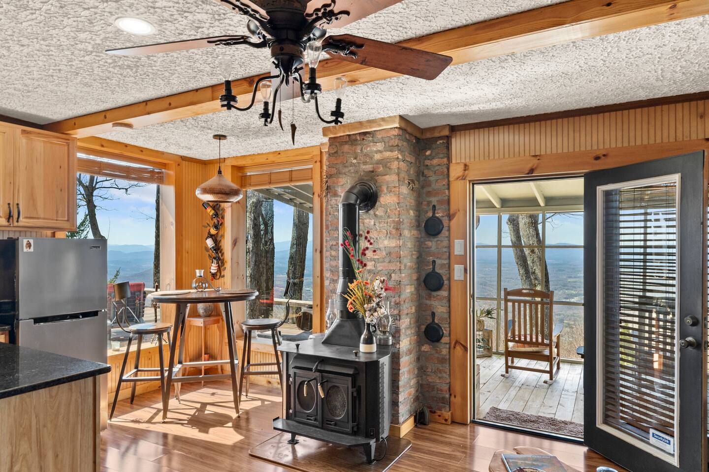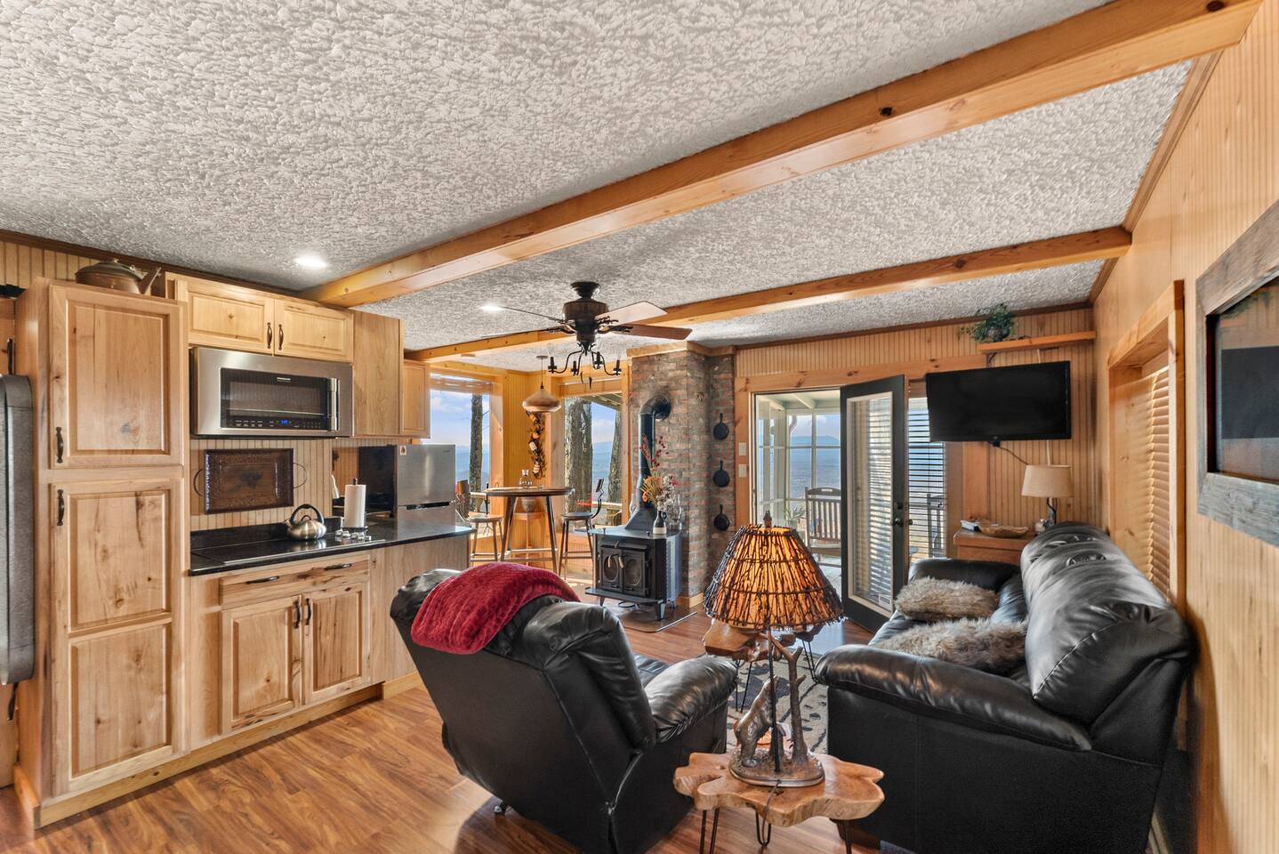 We had a fantastic stay here and would definitely rebook. Clean home with a beautiful view. Once you get down the mountain (about 15 min) it’s only 10 minutes to downtown Morganton. At the cabin, it feels very private despite having a few neighbors nearby. The cabin had a lot of existing supplies in the kitchen and bathroom that we weren’t expecting, which was a nice touch. I only wish we had booked a longer visit.
